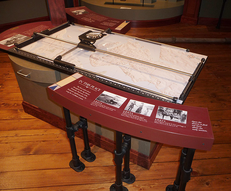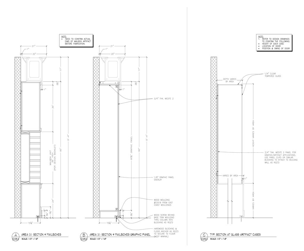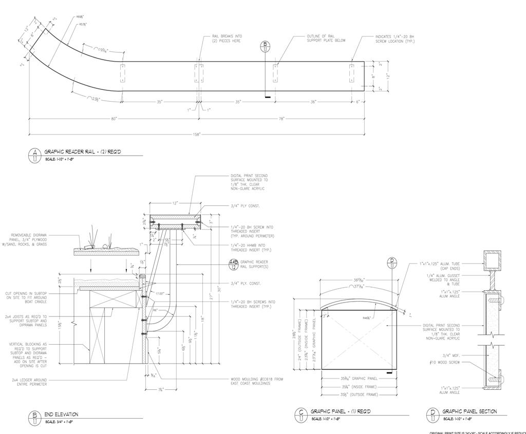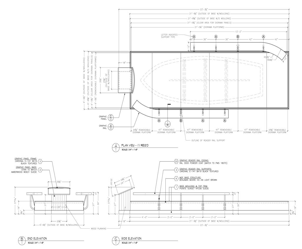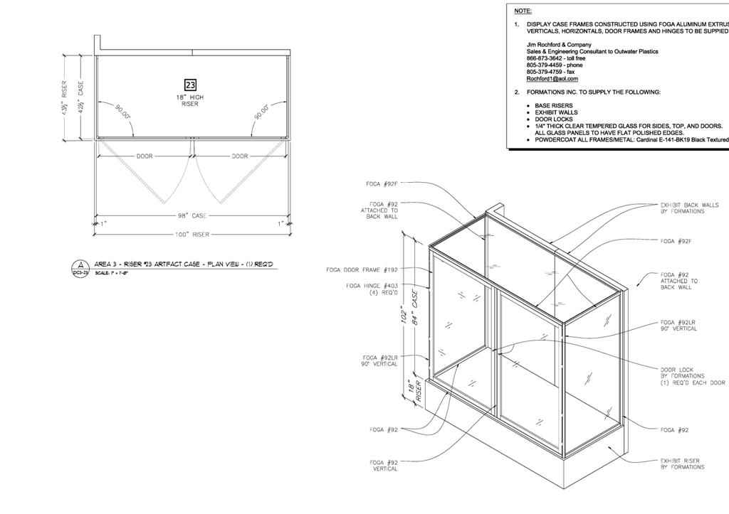 This project was a permanent installation consisting of custom walls, risers, large aluminum and glass display cases, and graphic panel reader rails.